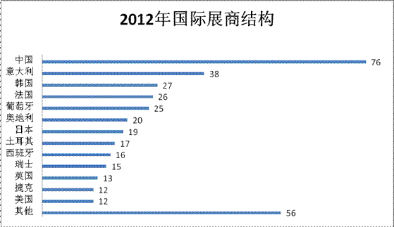 l 2012年展商數量:共計來自35個國家的1086位展商