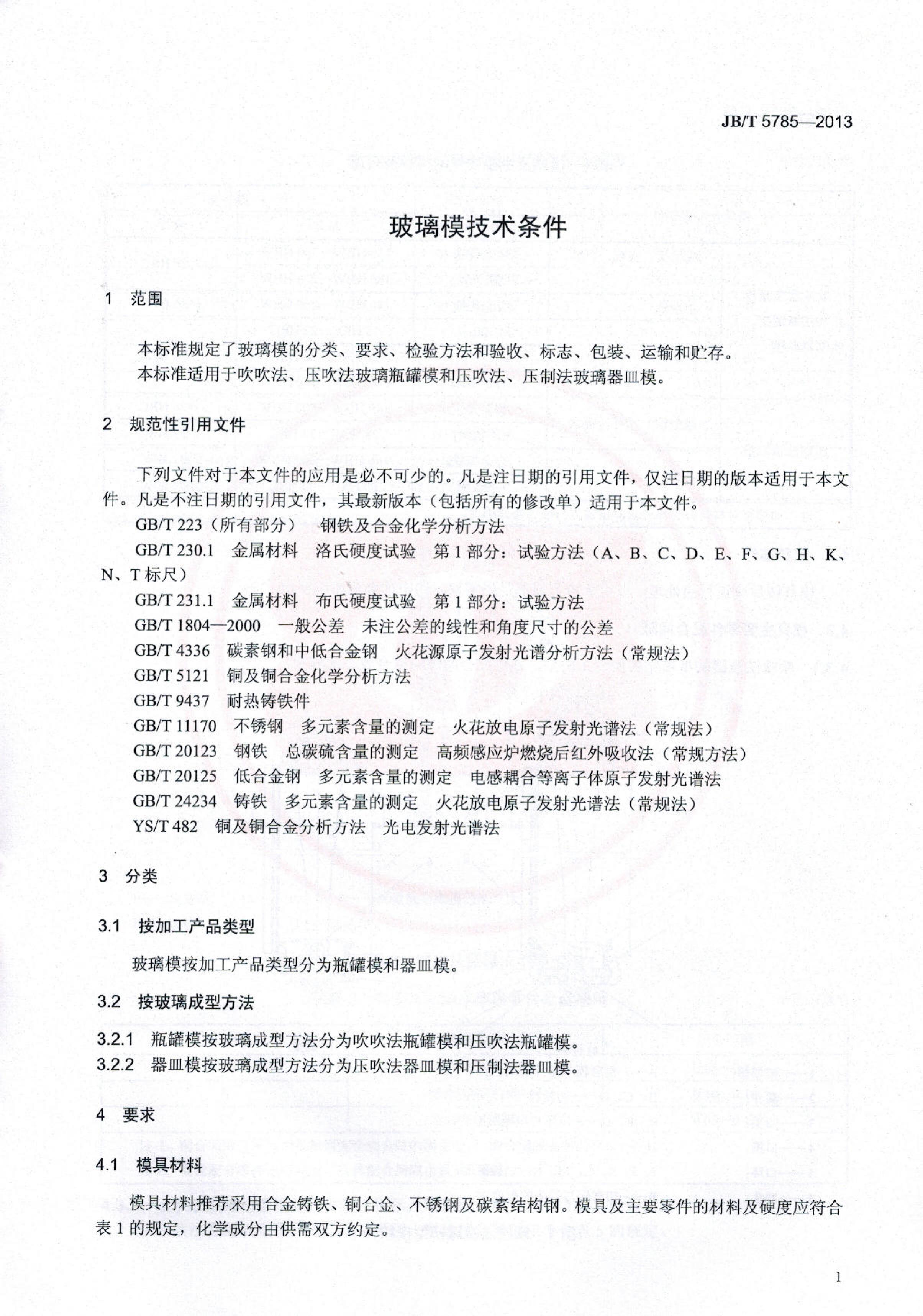 玻璃模技術條件