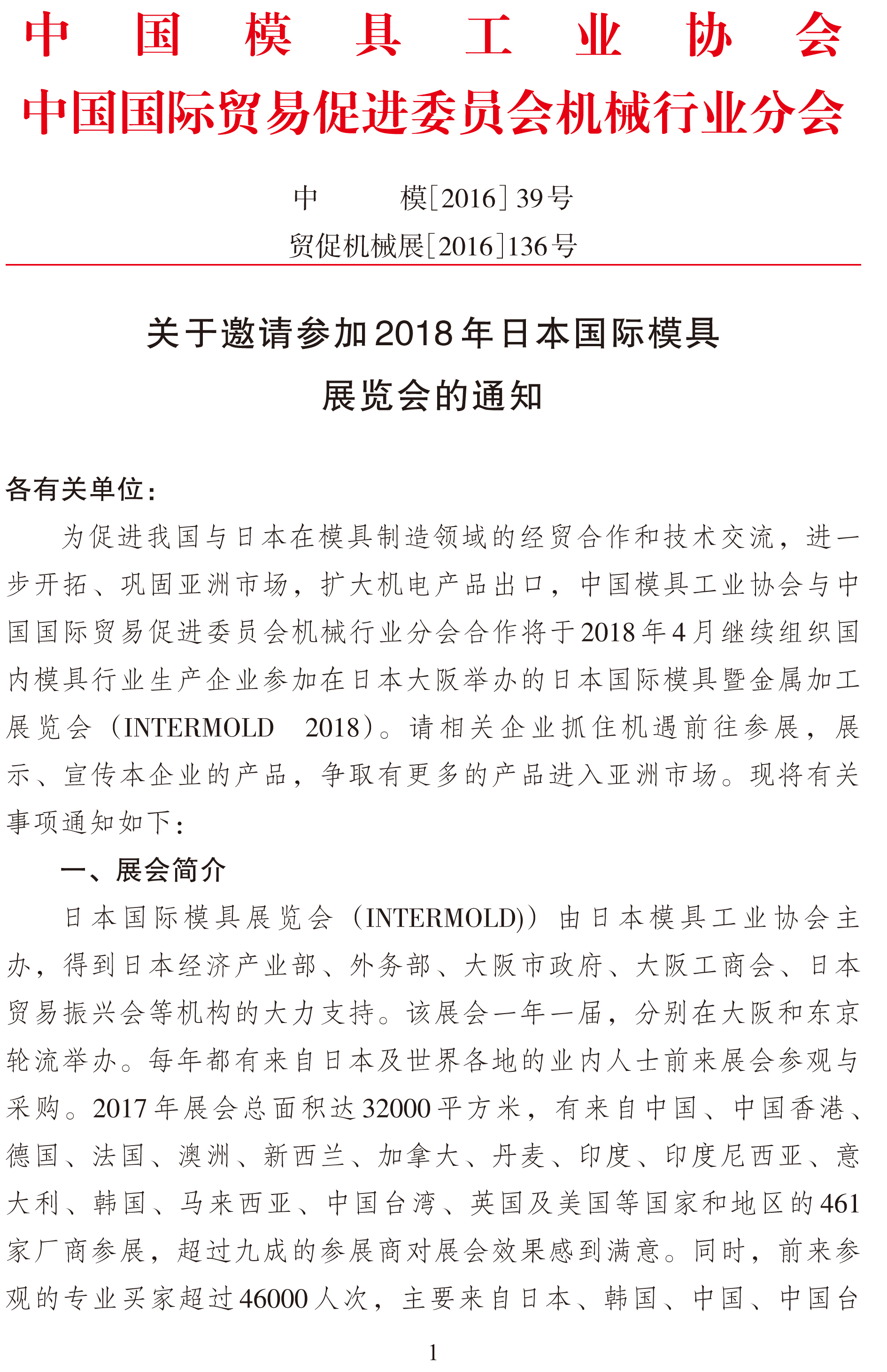 關于邀請參加2018年日本國際模具展覽會的通知