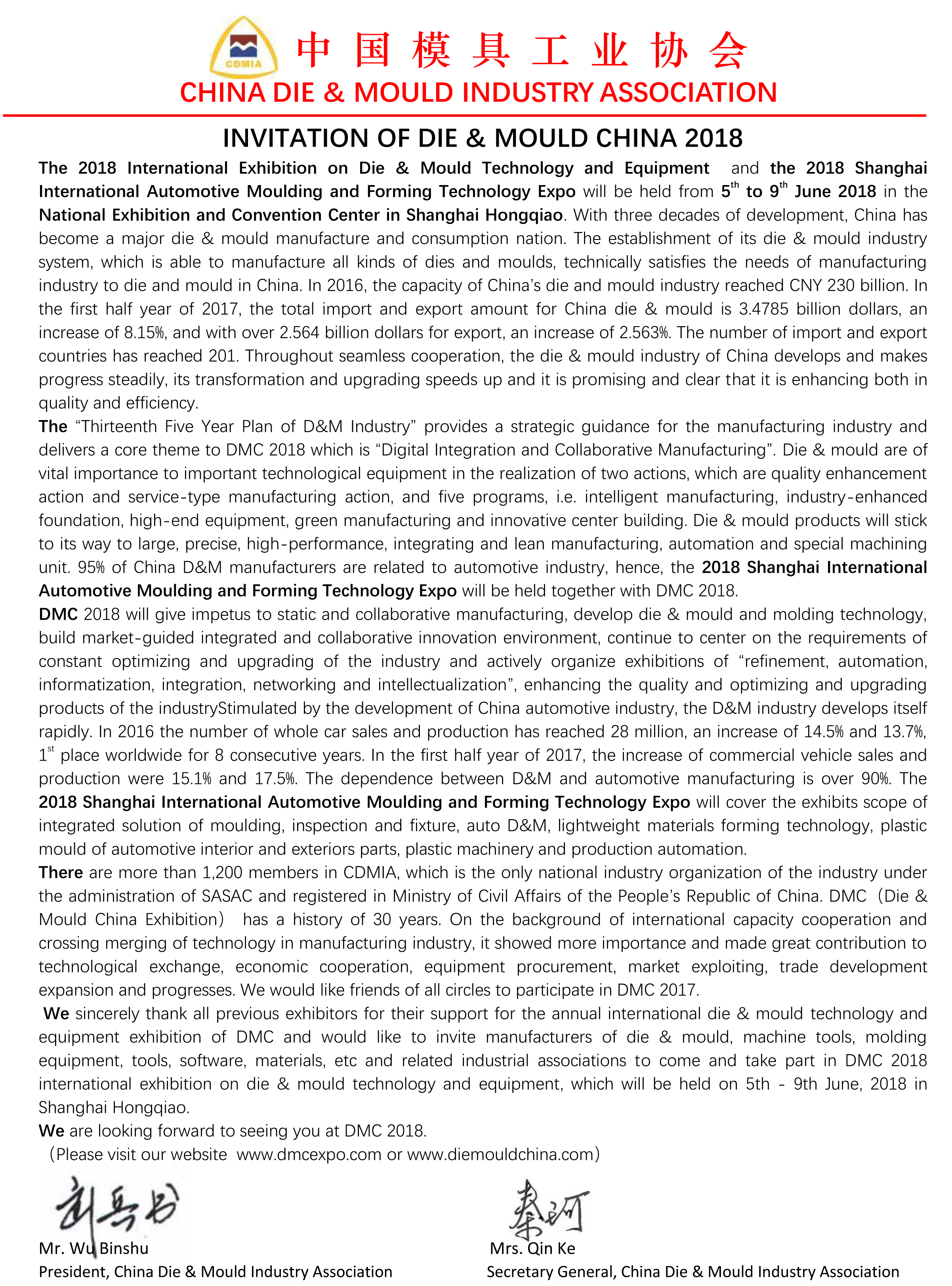INVITATION OF DIE & MOULD CHINA 2018
