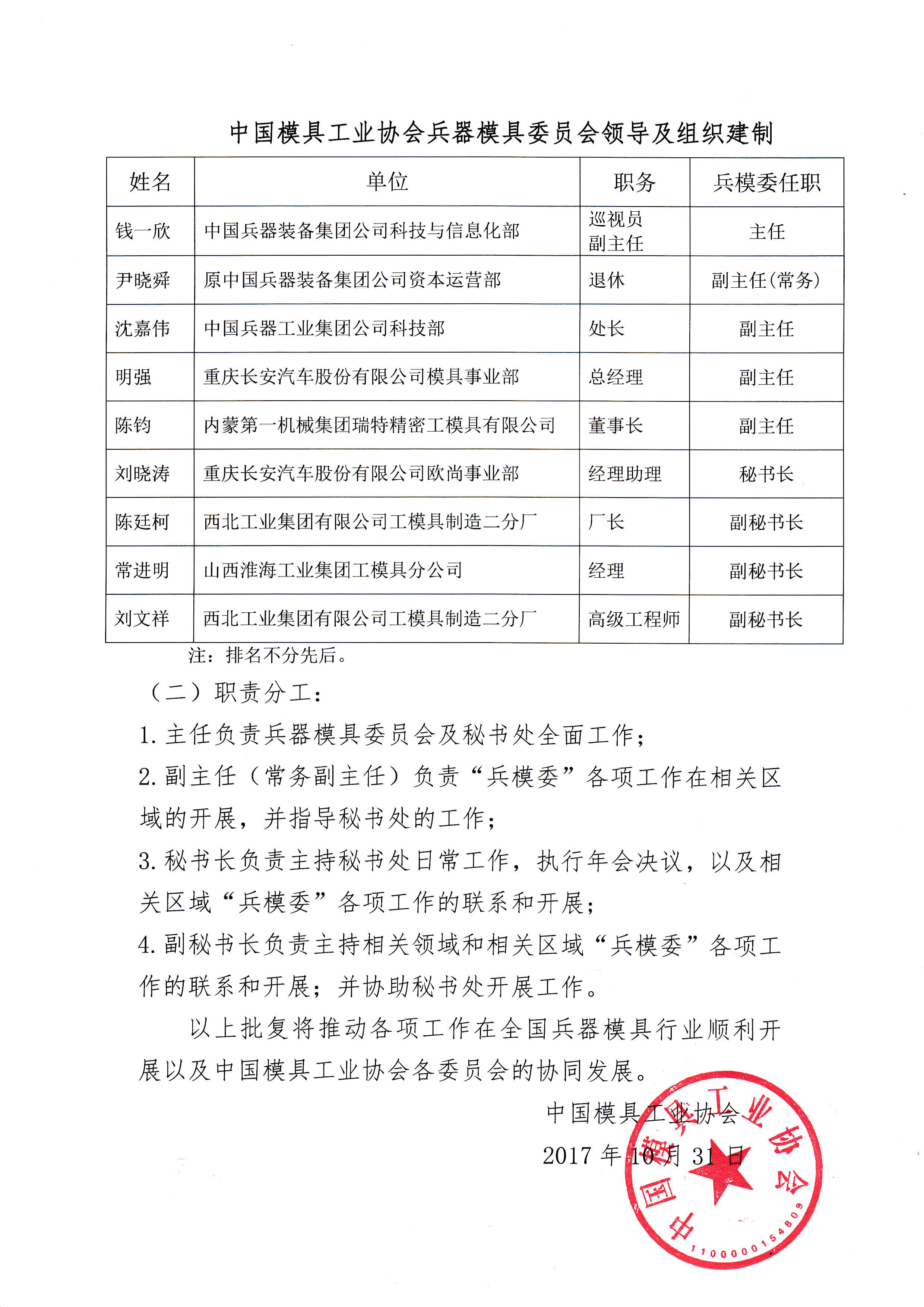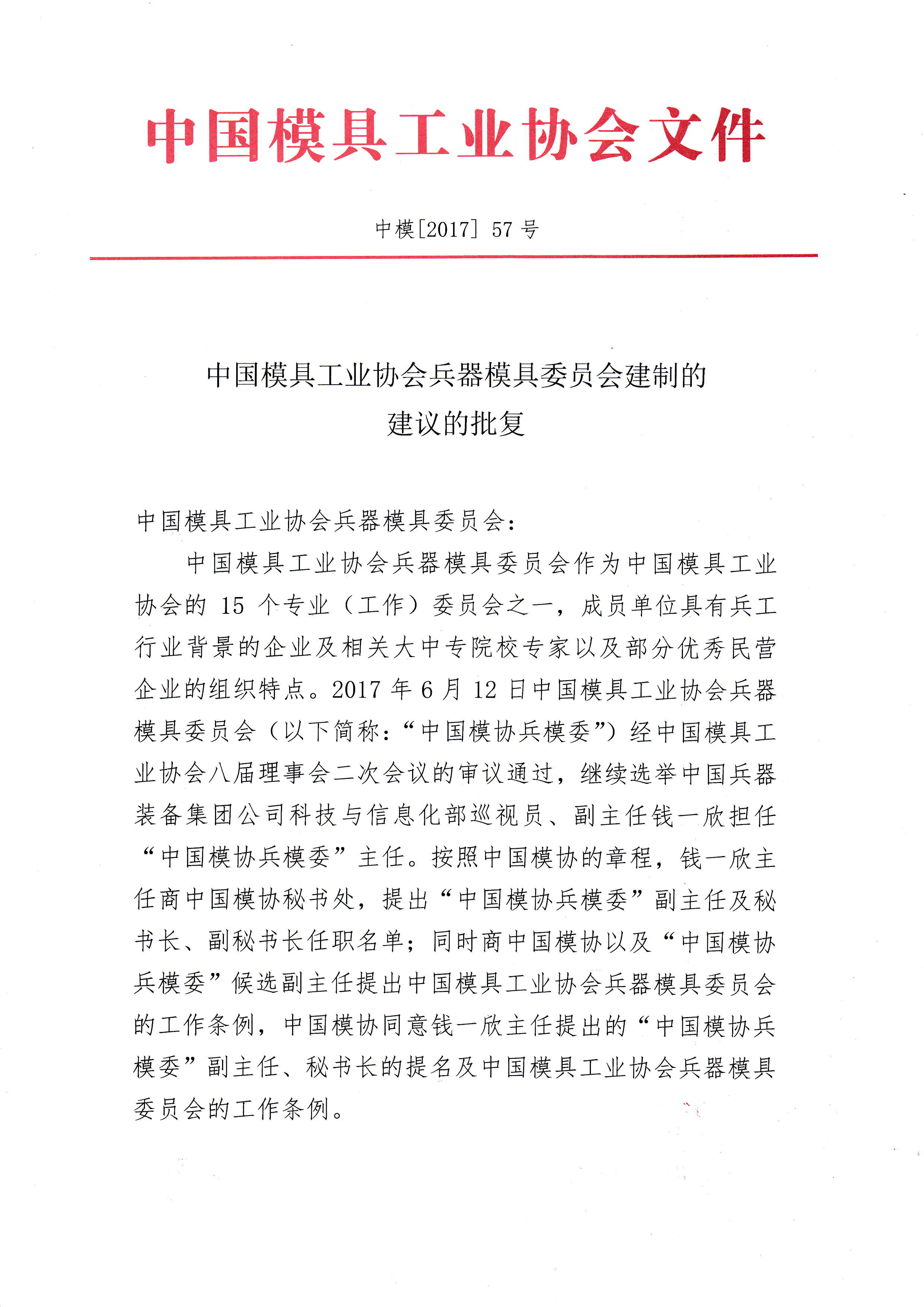 中國模具工業協會兵器模具委員會建制的建議的批復