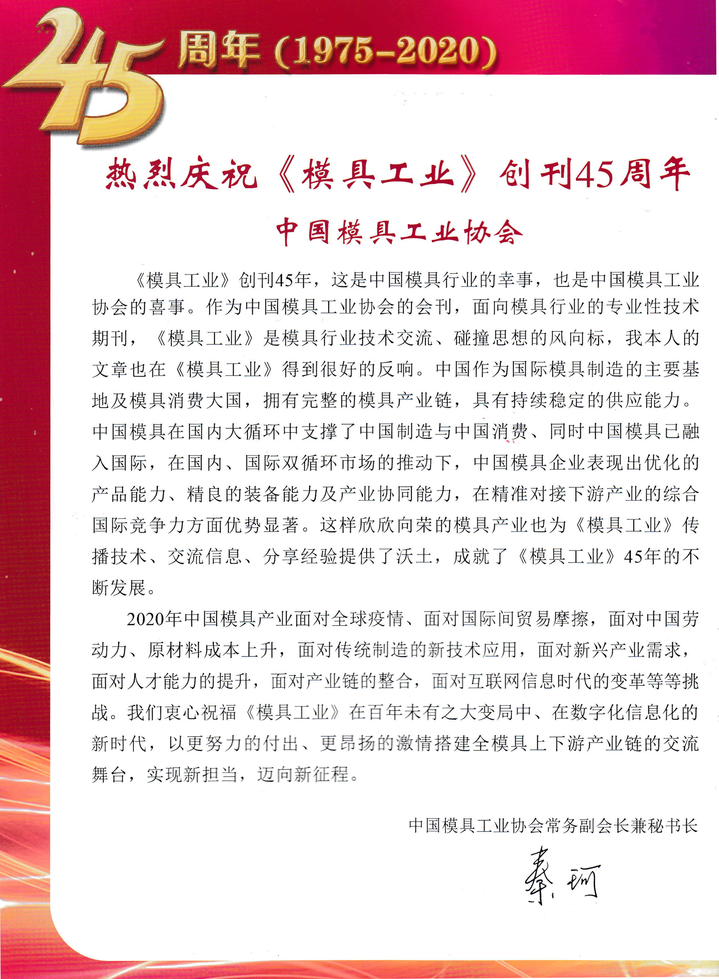熱烈慶?!赌>吖I》創刊45周年——中國模協常務副會長兼秘書長秦珂寄語