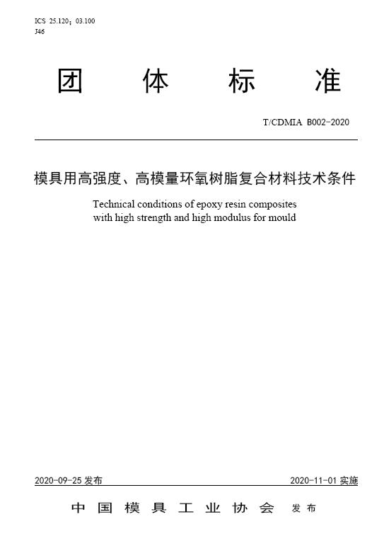 中國模協標準B002-模具用高強度、高模量環氧樹脂復合材料技術條件-2020