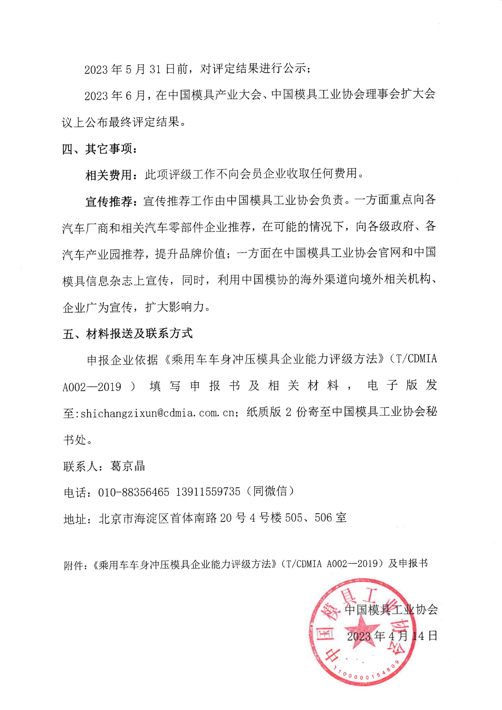 關于開展第二批車身模具企業評級工作的通知