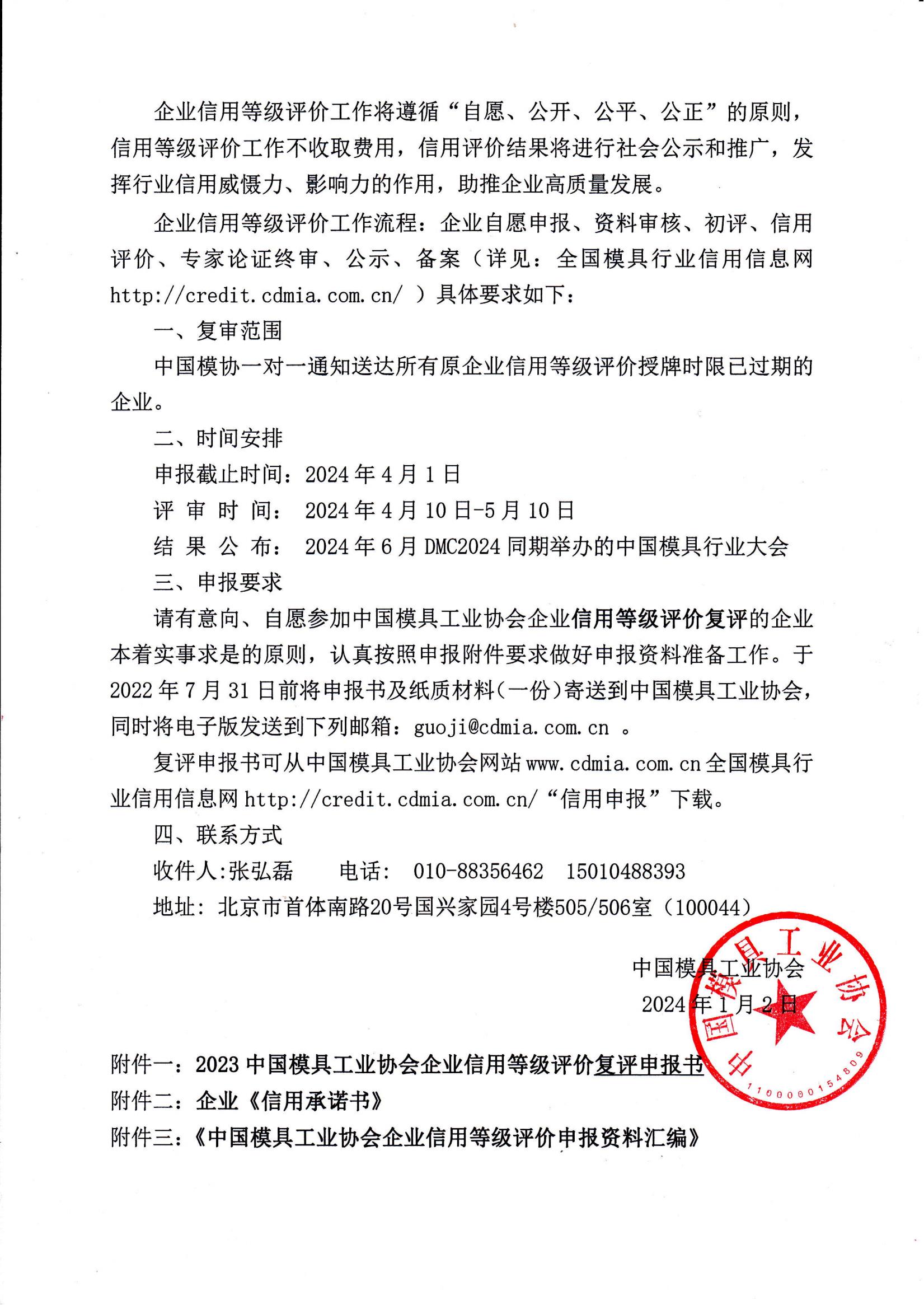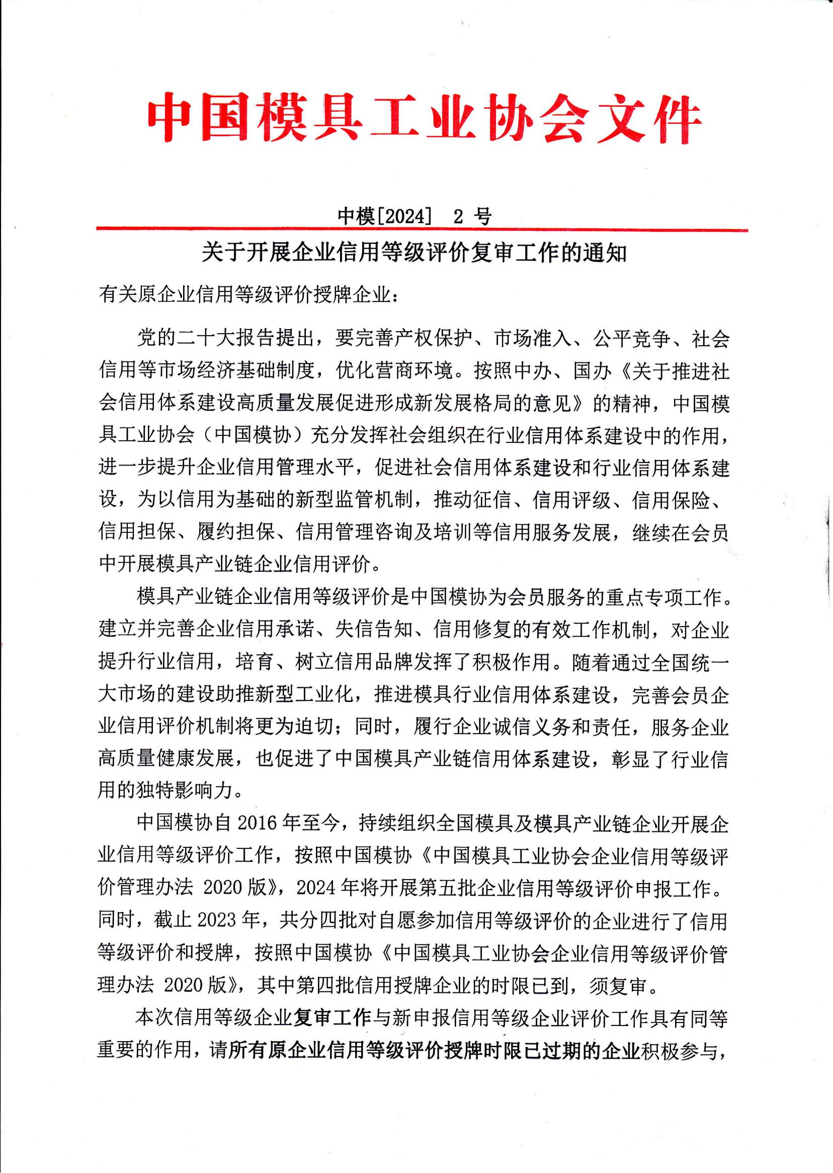 附件一:2024中國模具工業協會企業信用等級評價復評申報書.docx